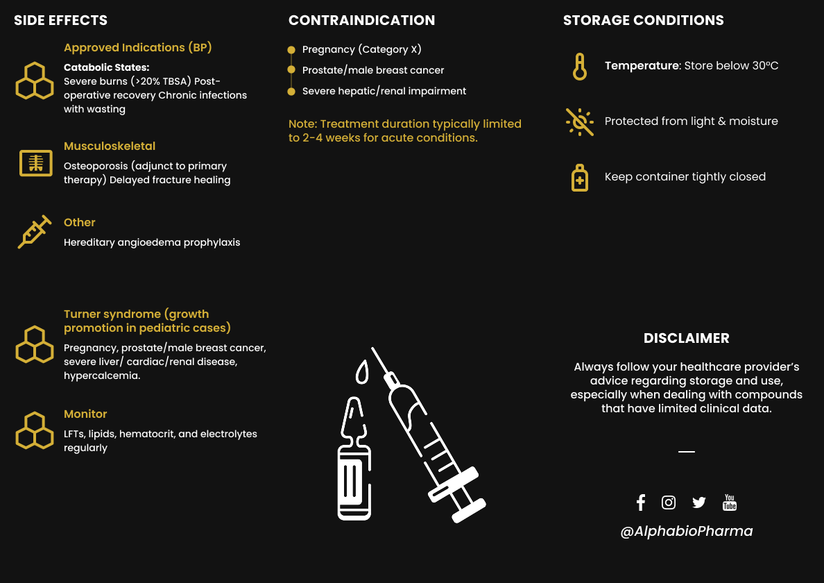 ➡️ Raadpleeg bij twijfel altijd een arts of apotheker vóór gebruik. Zelfmedicatie met anabole stoffen kent risico’s.