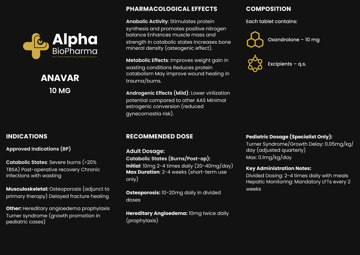 Anavar 10 mg is een oraal supplement uit de categorie anabole steroïden, bedoeld ter ondersteuning van normale fysiologische processen zoals spieropbouw en herstel. Voor diegenen die overwegen Anavar te kopen, is deze variant laag gedoseerd, bedoeld voor volwassen gebruikers die gericht en verantwoord wensen te doseren. Dankzij de orale vorm is het gebruiksvriendelijk en discreet. Niet bedoeld voor medisch gebruik of behandeling van aandoeningen. Altijd informeren bij een medisch professional voorafgaand aan gebruik.