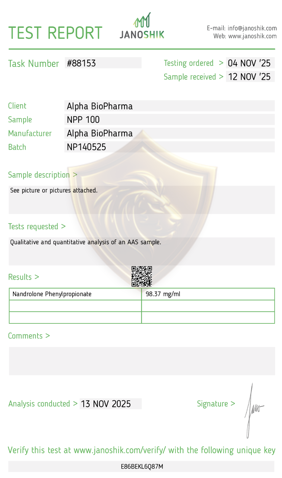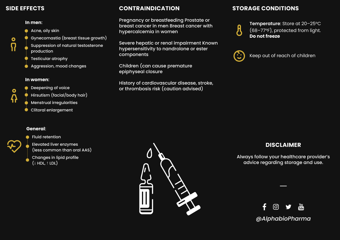 Door te kiezen voor Nandrolone Phenyl Propionate 100 mg/ml van Alpha BioPharma, kies je voor kwaliteit en betrouwbaarheid. Zorg ervoor dat je goed geïnformeerd bent over het juiste gebruik en de mogelijke risico's, en raadpleeg een medisch professional voordat je begint.